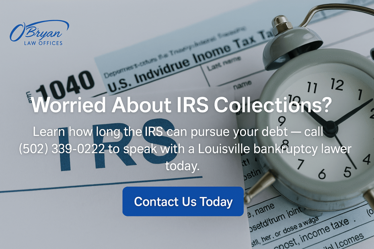 Knowing when your CSED expires helps you plan your next steps and avoid unexpected IRS actions. For help reviewing your transcripts or resolving tax debt before the clock runs out, call (502) 339-0222 to speak with an experienced Louisville bankruptcy lawyer at O’Bryan Law Offices today.